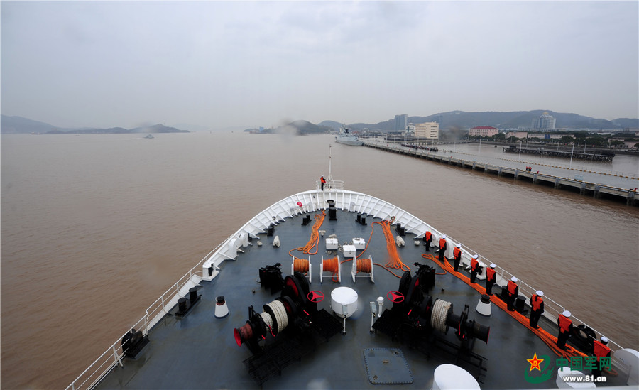 12月28日,圆满完成“和谐使命-2017”任务的中国海军和平方舟医院船缓缓驶抵浙江舟山某军港码头。江山摄