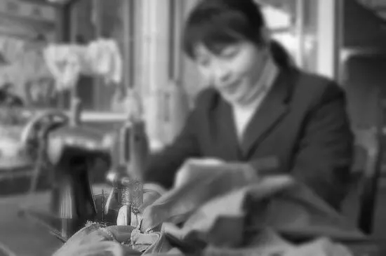 母亲你在窗台前的锁边机上“嗒嗒嗒”地蹬着踏板,床边堆满小山般的衣服。我坐在一旁歪头看着针尖儿有旋律地穿进衣服,利索极了。