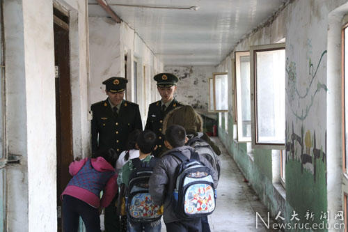三位国旗护卫队的同学为明圆小学的孩子们开展了国防教育。他们用通俗易懂的语言为孩子们讲解了中国的兵种、军衔制度以及国防生的相关知识,也介绍了中国人民大学国防生的相关信息。孩子们表示长大后也要当军人为国家效力。课后,三位同学耐心地回答了孩子们的各种问题,并鼓励其努力学习实现梦想,为祖国做贡献。