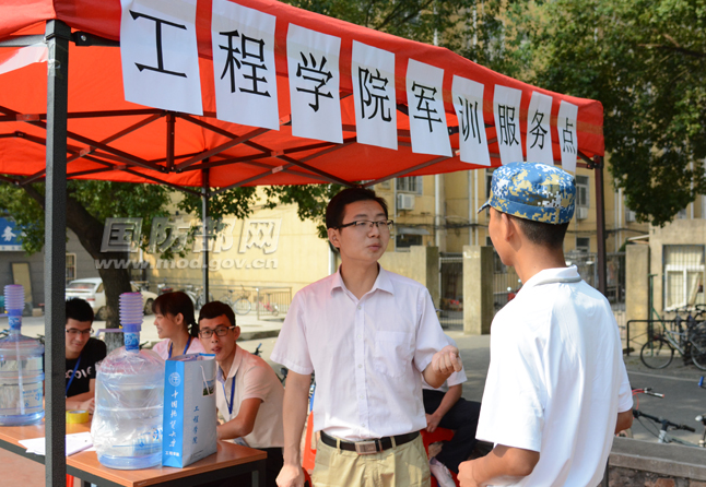 2015级国防生来自工程学院和机电学院,为保障国防生新生军训工作顺利进行,两个学院均设置了服务点助力军训。记者在工程学院军训服务点看到,桶装水、一次性纸杯、医药箱都摆在了桌上。工程学院党委副书记江广长告诉记者,军训期间,学生会、团委、志愿者协会三大组织轮流排班,确保军训服务点全天候值守。辅导员方面,除15级辅导员王俊老师全程在场之外,每天根据值班表安排一名辅导员,两名辅导员轮流在队列中巡视,避免发生安全事故。据了解,工程学院还推出各项活动服务新生,如党建小分队在休息时间向新生宣传介绍入党事宜,学生会发起向日葵笑脸计划,拍摄新生照片并制作展板对外展示等。