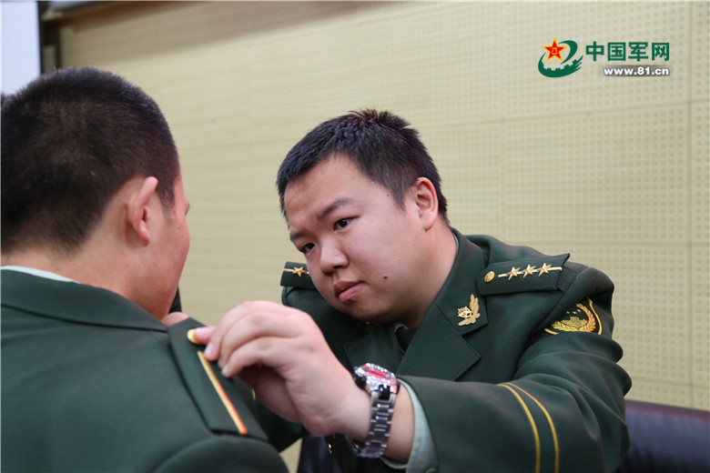 选培办张剑干事为新生佩戴警衔
