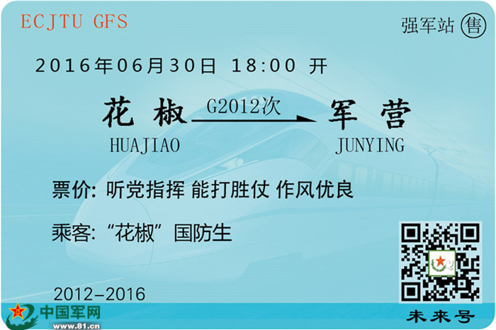 结束了中途的停靠站,即将到达大学旅途的终点站。四年磨枪砺剑,终将亮剑疆场,彰显军人本色。对于国防生而言,这不是迷彩青春的终点,而是军旅生涯一个崭新的起点,爱国奉献、精武强能,在强军路上奉献自己的青春理想。
