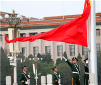 凌晨4时许,国防生们就列队出发,穿过重重夜色,一行人抵达目的地。天色渐明,东方泛起点点霞光,天安门国旗护卫队队员从城楼高大的门洞里稳步走出。从城楼到升旗台,138步,步步随风。36人组成的队伍横看成行,纵观成列,不缓不急,严整有序,尽显大国威严。5时50分,升旗仪式正式开始,五星红旗在庄严的国歌声中缓缓升起。