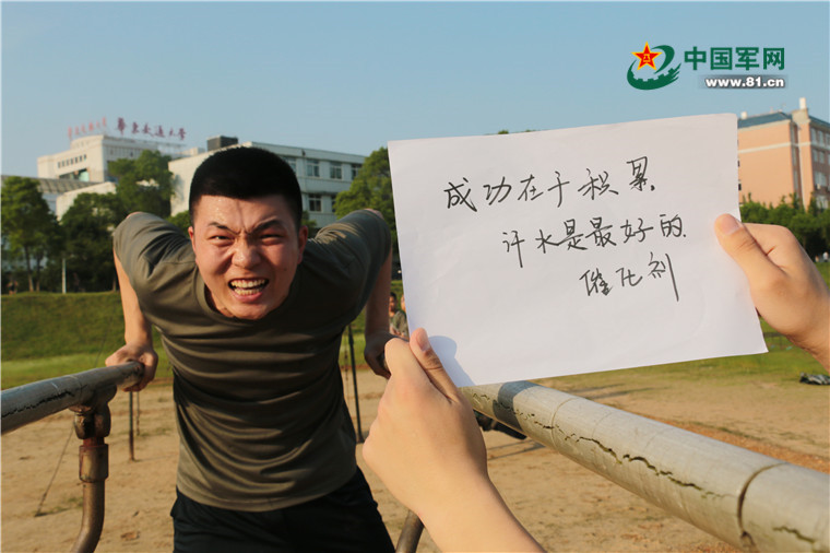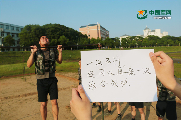 饭前练练单杠,一次不行,还可以再来一次。在考核前,这无疑是最让自己放松的方式。