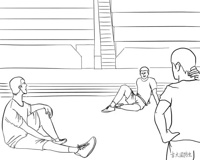 训练后的片刻小憩,这是战友们的兄弟情谊。