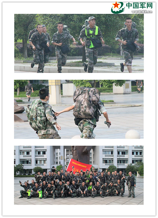 放假不放制度,放假不放训练。作为军人,我们时刻要保持良好的身体状态和训练水平。为了让大家保持住训练状态,我组织了环校武装奔袭项目。在奔袭过程中,大多数同学都非常亢奋,但也有少部分同学明显跟不上节奏,这时我们不抛弃、不放弃,通过领跑跟跑的方式,让每一位同学都冲过终点线,顺利完成奔袭训练。我也是想通过奔袭训练告诉大家我们要时刻准备着!