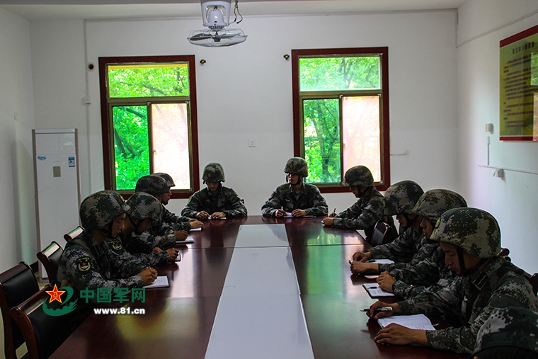 连队骨干进行战术方案研讨。