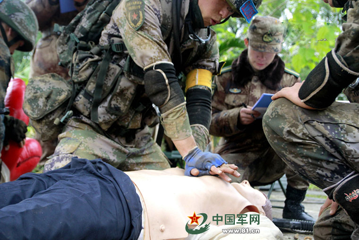 过硬的后勤是战场致胜的保障,图为特战队员进行战场救护。