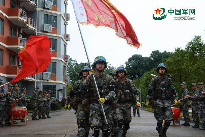 擂战鼓、扬军旗,特战班强军战士踏上比武征程。
