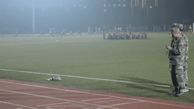 晚间的科大,训练与测试才是田径场的主角。每当自习结束的钟声响起,偌大的操场就陆续迎来前来训练的队伍。障碍,百米,五公里……静谧的空气里,呐喊声此起彼伏,到处是奔跑的身影,到处洋溢着昂扬的精神。