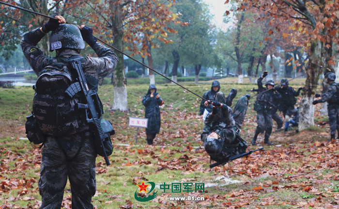 绳桥:模拟特战班在行军过程中遇沟壑、河流等自然障碍,全班需通过搭设绳桥的方式通过。