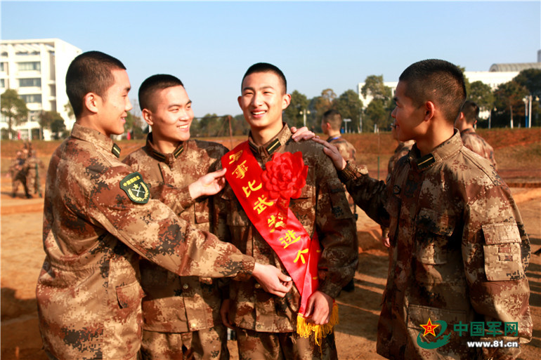 在华东交大国防生的比武场上,2013级国防生陈荻键刚刚打破30×2蛇形跑纪录,战友的喝彩声还未散去,就传来了“噩耗”:2015级小将王榕平又刷新了纪录……一个个成绩相继被刷新,一张张新面孔出现在龙虎榜上,比武场上到处弥漫着浓浓的“硝烟味”。2016年12月31日上午,驻华东交通大学选培办组织全体在校国防生开展第六届“创纪录•破纪录”军事大比武,150余名国防生训练尖子齐聚比武场同台竞技,让华东交大国防生学院成为冬日校园最热闹的一角。