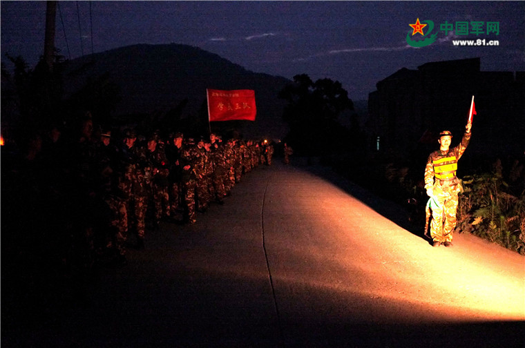 夜间行军,作为执勤人员,我要保障好周围战友的安全。