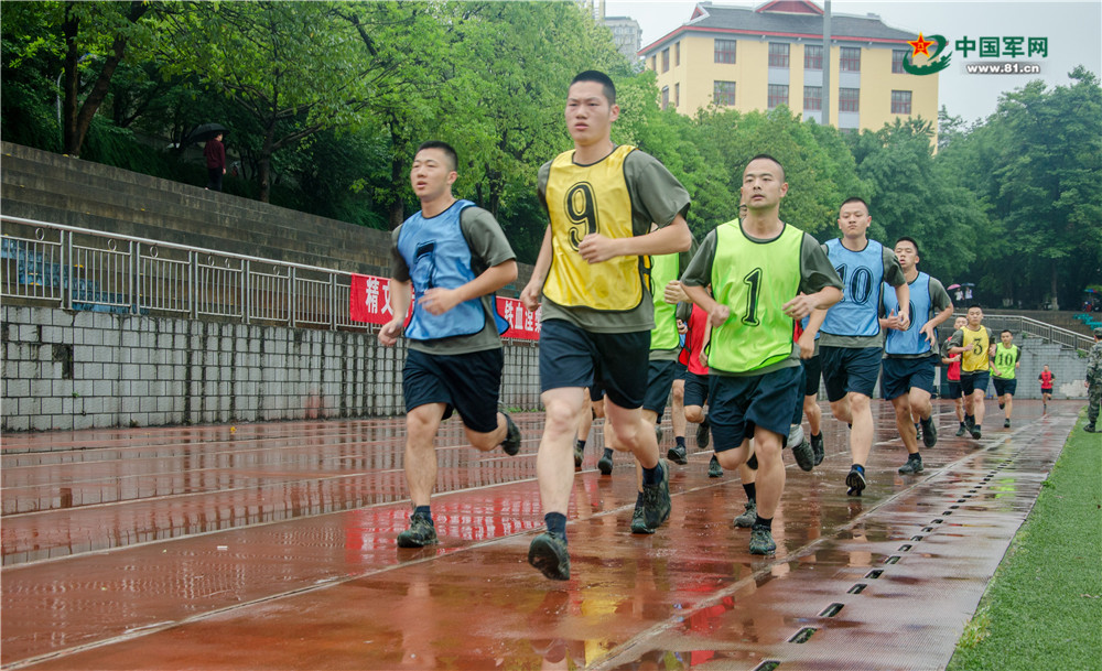 下午3时,考核最后一项:三千米跑。在淅淅沥沥的雨水中国防生的意志愈加坚定,不断超越自我。