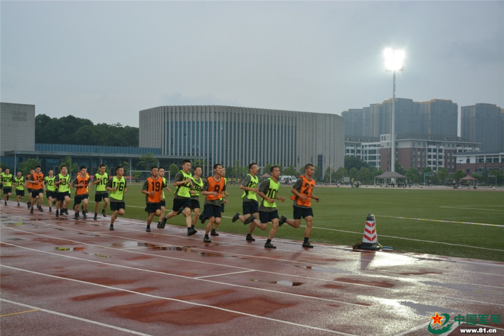 台上一分钟,台下十年功。体能考核也不例外,考核之前进行过很多的训练,原本平整的跑道被科大学子踩出一个个坑。雨后在灯光的照射下与冒雨训练的科大人交相辉映,展现出别样的风采。