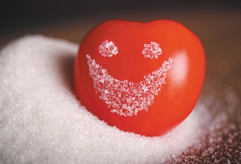 8.西红柿  热量:19 大卡(100克可食部分)  西红柿中维生素A较丰富,维生素A对视力保护及皮肤晒后修复有好处。凉拌西红柿不撒糖更好,否则甜味可能影响食欲。肥胖者、糖尿病人、高血压病人都不宜吃被称为“雪漫火焰山”的加糖凉拌西红柿。