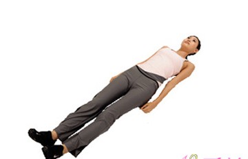 1、吸气:手背朝上并两手伸直与肩呈一直线,两腿上、下叠合,尽量贴近地面以刺激侧腰肌肉。