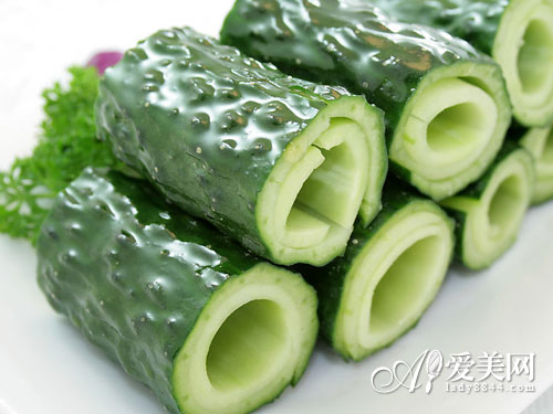 黄瓜所含的黄瓜酸,能促进人体的新陈代谢,排出毒素。维生素C的含量比西瓜高5倍,能美白肌肤,保持肌肤弹性,抑制黑色素的形成。黄瓜还能抑制糖类物质转化为脂肪,对肺、胃、心、肝及排泄系统都非常有益。