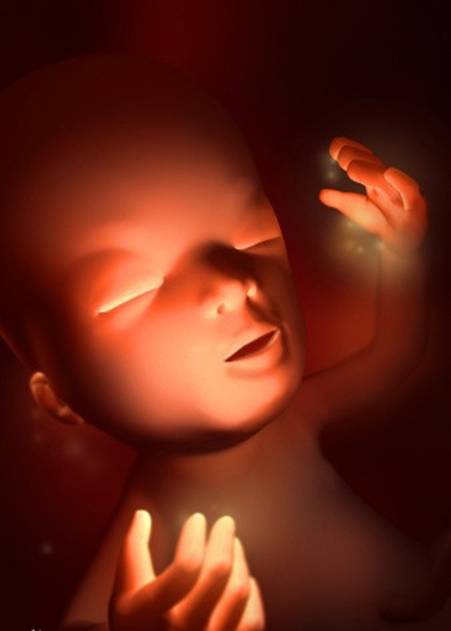 第13-胎儿身长约76毫米,体重比上周稍有增加。眼睛在额部更为突出,两眼之间距离开始拉近,肝脏开始制造胆汁,肾脏开始向膀胱分泌尿液。神经元迅速增多,神经突触形成,胎儿的条件反射能力加强,手指开始能与手掌握紧,脚趾与脚底也可以弯曲,眼睑仍然紧紧地闭合