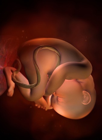 第34-胎儿体重大约2300克,坐高约为30厘米。此时胎儿已将身体转为头朝下的姿势,头部已经进入骨盆。这时胎位是否正常直接关系到孕妇是否能正常分娩,如果胎儿臀部向下体位或是有其它姿势的胎位不正,医生会采取措施进行纠正。
