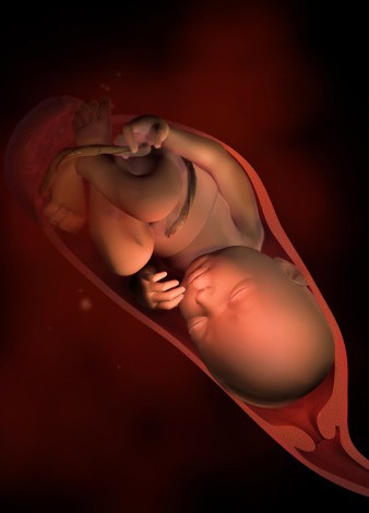 第39-胎儿仍在继续长肉,脂肪的储备将会有助于他出生后的体温调节。胎儿身体各部份器官已发育完成,肺部是最后一个成熟的器官,在他出生后几个小时内才能建立起正常的呼吸模式。胎儿现在安静了许多,不太爱活动了。这是因为胎儿的头部已固定在骨盆中,他更多地将会是向下运动,压迫孕妇的子宫颈,随时要诞生到这个世界上来。