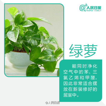 ①芦荟:可以美容,净化空气;②绿萝:适合摆放在新居;③非洲茉莉:杀菌;④常春藤:有效抵制尼古丁中的致癌物质;⑤虎尾兰:清除有害物质;⑥金琥:昼夜吸收CO2;⑦白掌:抑制人体呼出的废气;⑧银皇后:净化空气;⑨铁线蕨:吸收甲醛。你最喜欢哪一款?