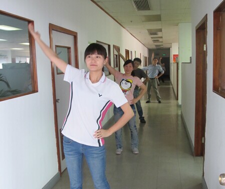 1、经常变换姿势,忙里偷闲可以做做广播体操。杜心如教授说,“我非常推崇广播体操,其中的扩胸运动、伸展运动,都能够使脖子得到屈伸,让肌肉放松。”在广播体操运动中,不仅全身大块肌肉要保持一定的张力,甚至连平时锻炼很少的短、小肌群也发挥作用。常做广播体操可以使大脑在得到充分休息的同时,让肌肉得以放松,从而降低疲惫的程度;可以使身体发热,有利于体内代谢产物的排泄,减少乳酸的积累,使人体不易憔悴;长期锻炼非常有利于提高睡眠的质量;工作之余做广播体操,有助于缓解工作时出现的暂时性大脑疲劳。