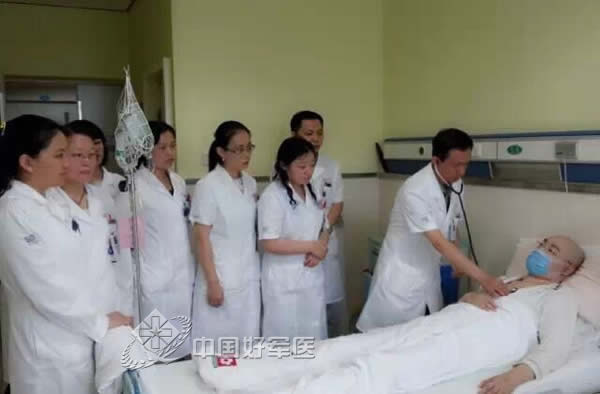 当上科室主任后,吴晓雄为了能把学科建设搞上去,他组织全科同志大力开展“岗位练兵、岗位成才”和“学术研究、技术创新”活动,使科室整体业务水平,确诊率、治愈率及抢救成功率有了显著提高。2009 年,总后系统的一名军人干部,不幸患上了骨髓增生异常综合征这种难治的疾病,如果不及时治疗会发展为白血病,唯一有可能治愈的办法是骨髓移植。血液科给他进行了HLA全相合同胞供者的异基因造血干细胞移植,移植是成功的,但患者两个月后出现IV度移植物抗宿主病(GVHD),情况非常危险,给予激素,环孢素等常规治疗两周,没有明显效果,并持续肝功能损害,移植后患者开始出现胸闷、气短、氧分压下降,转氨酶、胆红素继续升高等急性肝衰竭表现,胸部CT 提示间质性肺炎。最后吴晓雄决定应用抗CD25 人源化单克隆抗体注射液结合脐带间充质干细胞,来治疗全身GVHD,患者在我们的精心治疗后逐渐康复,皮疹明显消退,肝功能明显好转,低氧血症很快好转。随访了三年未再发生GVHD,血象持续正常,患者至今仍很健康。这种方法在治疗难治性GVHD上可谓一种大胆创新、勇敢进取的新思路。