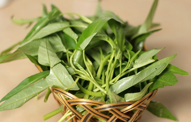 空心菜:又名蕹菜,性甘、平,含蛋白、脂肪、无机盐、烟酸、胡萝卜素等,具有解毒、清热凉血等作用。
