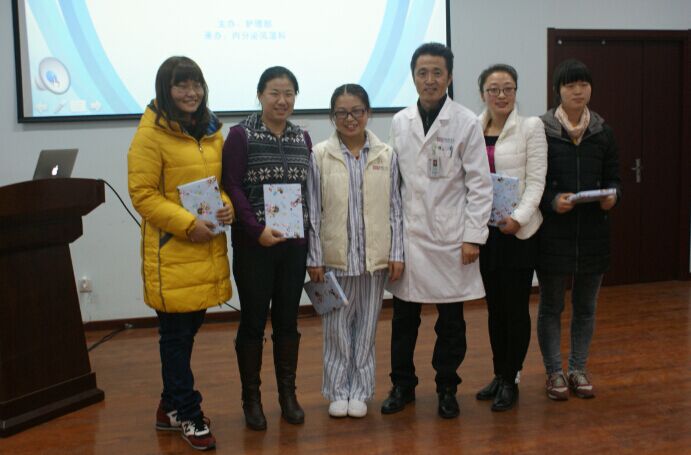 医疗工作中,尹主任是科室的领军人物,日常生活中,他却像同事们的大家长一样,时时刻刻关心着每一位医护人员。2010年冬天,窗外飘着鹅毛大雪,科里的一名护士在工作时突然发热,体温高达40℃,尹主任刚结束一天的门诊后得知这个消息,二话不说,亲自诊疗,并安排她做X 线胸片,抽血化验,最后诊断为病毒感染。尹主任自掏腰包买药,并安排其他护士给她输液。他还不顾疲惫给发热的护士准备了热粥及热橙汁,当这名护士手捧着热气腾腾的米粥时,不禁热泪盈眶,主任见状,风趣地取笑她说:“这么大了还哭鼻子,下次不给你买粥喝了。”逗得小护士破涕为笑,不好意思起来。尹主任继续安慰她道:“好好休息、好好养病,这样家人才不担心,我们大家才不担心。”护士听话地点了点头,大口大口地喝起粥来,尹主任这才放心地离开。私底下主任也常和护士长聊天:“科室的护士们年纪都很小,工作又辛苦,要在生活上多给予她们帮助和支持。”尹主任总随身带着一个黑皮小本,上面不仅记录着他诊疗时的心得体会,还记录着科里每一个同志的生日,这个小黑本被大家亲切地称为“尹氏葵花宝典”。每当有人过生日时,他都会精心准备一个生日蛋糕或者一份小礼物,带给大家惊喜之余,更多的带来的是家人般的温暖。正是这些丝丝入扣、细小之处的点点滴滴,彰显了内分泌科领导对下属的人文关怀与无尽体贴,也造就了内分泌科团结一心、和谐向上的大家庭氛围。