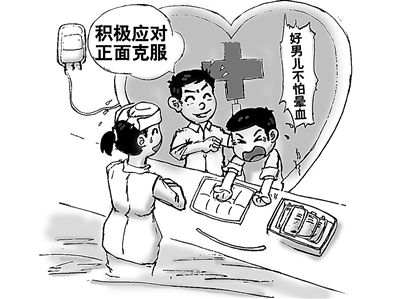 其次,调整个体认知态度,保持对血的亲近感。我们越是惧怕的东西,越是走近它、亲近它,畏惧感就越是淡漠。某些东西本不可怕,往往是我们在开始时,那种不祥之感的心理负面暗示,和所形成的抵抗不祥感觉的态度,才强化了莫须有的对某样东西的恐惧。所以,消除对“晕血”的困扰,可以从接近血液做起。先练习在想象中接近血:通过想象唤起血液的场景,如输血、抽血、创伤流血等情景,想象自己能触摸血液、清洗血迹、包扎流血的伤口等,这叫意象疗法。经常这样练习,可增强抗晕血恐惧的心理耐受力,并可增强能接触血液的力量感。之后,需要在现实中逐步练习:观看流血的场景,如在献血场合观看别人献血的过程,如遇到自己或陪同亲人看病时验血,尽量看着医生操作;尽情感受电视电影里的流血场景;若遇到小创伤流血,尽可能亲自擦拭血迹或包扎。晕血确实带来了困扰,最重要的是以一种平常心对待,逐步克服。