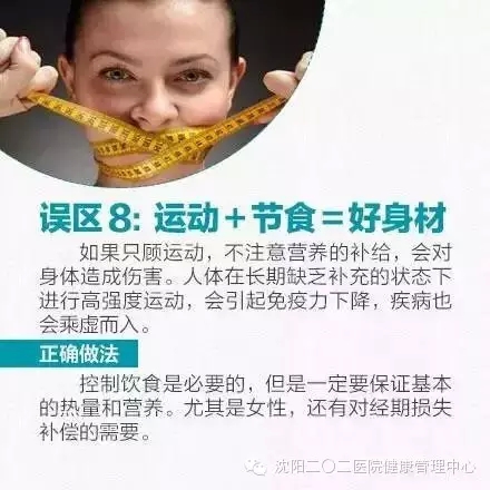 运动后大量补水、出汗了喝冷饮降温、锻炼强度越大减肥效果越好、运动+节食=好身材……你知道吗?这些你习以为常的做法,其实都是错误的!运动,只有掌握了科学的方法,才能练出好身材。周末了,运动锻炼要注意避免这9大误区。