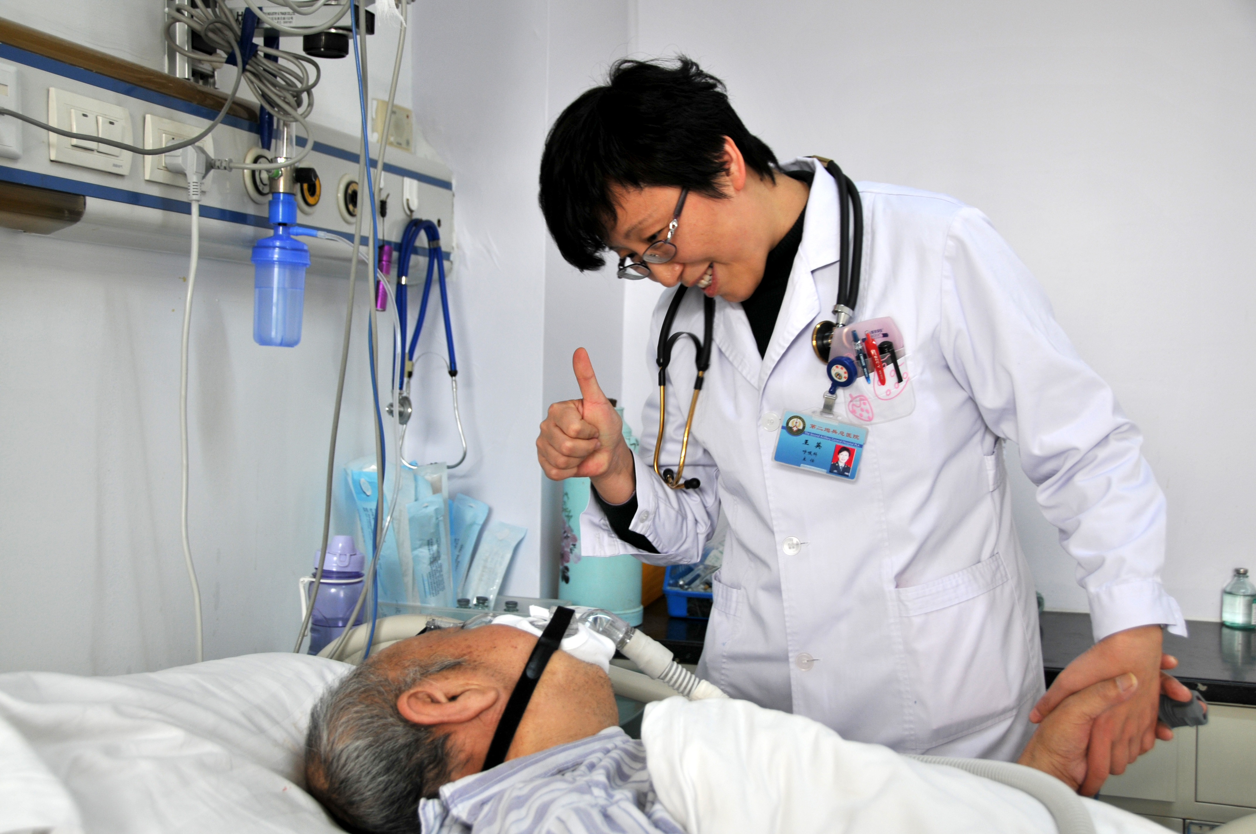王佳慧老人的老伴叫石爱荣,因患呼吸衰竭,长期住在第二炮兵总医院重症监护室病房。子女和老伴都定居国外,治疗和照顾老人的责任全落在医护人员肩上。作为主治医生,王英比别人更多了几分责任和担当。