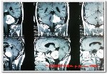 2、颅后窝型:肿瘤多起源于三叉神经根。运动根受累的症状多较突出,如颞肌及咀嚼肌无力、萎缩等。临床表现为三叉神经痛者极少,但感觉减退可早期出现,且多系第1、2、3支同时受累,也可能仅有角膜感觉减退。肿瘤压迫第7、8对脑神经时,可引起面肌抽搐、周围性面瘫、耳鸣、听力减退,前庭功能亦受累。肿瘤靠近小脑幕者,有第9、10、11对脑神经受损的症状。小脑受压时,多有共济失调。如脑干受压或移位,常出现对侧或同侧锥体束征。一般颅内压增高症状出现较早且较明显。
