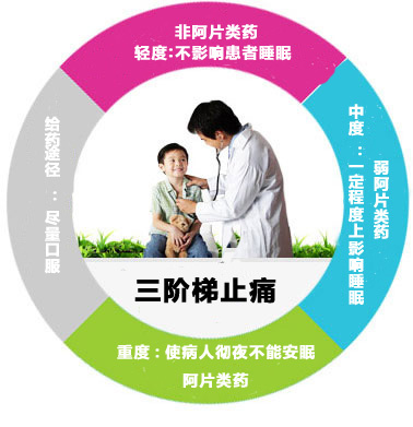 1986世界卫生组织推荐三阶梯止痛法,我国卫生部药政管理局于1994年公布的《癌症病人三阶梯止痛疗法的指导原则》是癌痛药物治疗必须遵守的五大原则之一,即在对癌痛的性质程度和原因作出正确评估后,适当地选择相应的镇痛剂,对于轻度疼痛的患者应主要选用解热镇痛剂类的止痛剂;若为中度疼痛应选用弱阿片类药物;若为重度疼痛应选用强阿片类药物。
