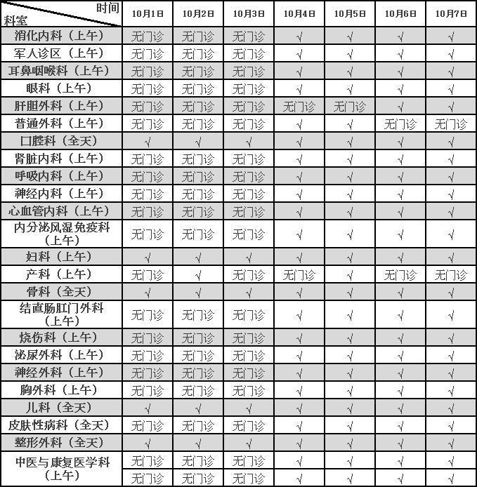 注:划“√”的栏表示当天该科室出门诊
