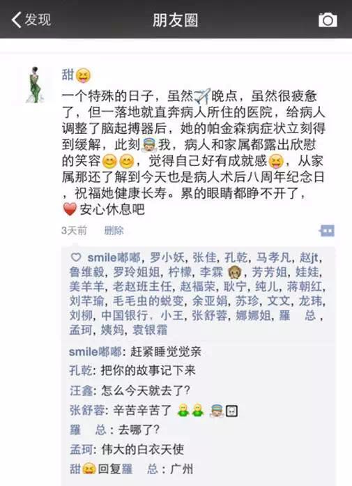 “当时特别累特别累,浑身像散架了一样,但就是睡不着,是因为比较兴奋吧,病人调试后的效果特别好。家属说老人早上6点吃第一顿药,我得早早过去,观察用药效果。当时好像是4点多睡的,7点多起床,然后就去医院。”罗甜说。