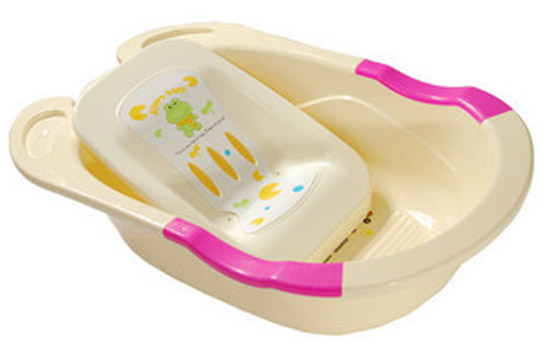 2、婴儿浴床/浴网/ 注:婴儿浴床就是放在澡盆里的架子,不过最好用沐浴网,架子很硬容易伤到宝宝。
