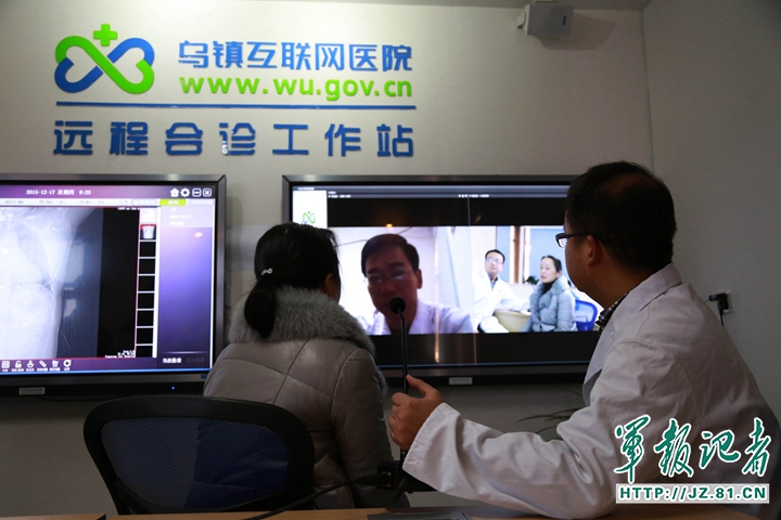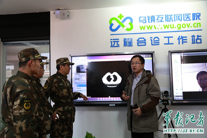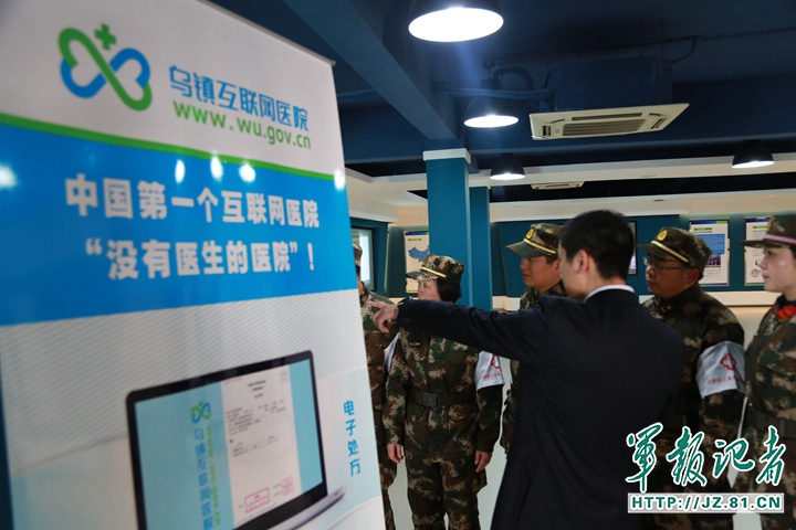 中国军网-军报记者(陈杰)作为国内首家互联网医院,浙江省嘉兴市的乌镇互联网医院于12月7日正式挂牌运营。在世界互联网大会举办期间,这家小小的医院吸引了来自世界各地的游客,也迎来了国内外的医疗同行。嘉兴地区医疗水平最高的医院——武警嘉兴医院的医护专家们也加入了参观学习的队伍。