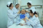 护士们视患者如亲人,为住院老人梳头。