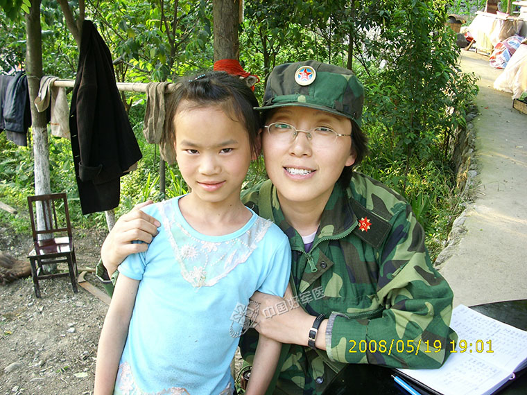 在汶川地震中,王英认养受灾儿童龙庭玉,并爱心支助她上学。