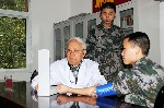 院士不辞千里,不顾严寒,为官兵们送去的不仅是健康,更是一份温暖和一份感动。瞧,汪院士正在认真细致地为一名战士测量血压。