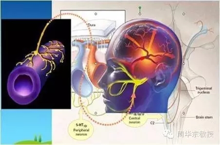 颅内外经感觉神经受到疼痛刺激传导到大脑皮层而产生痛觉。