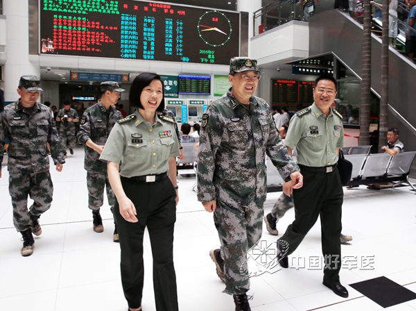 医院领导陪同郑卫平政委看望慰问两名抗洪受伤战士