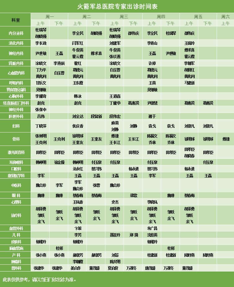 火箭军总医院专家坐诊表