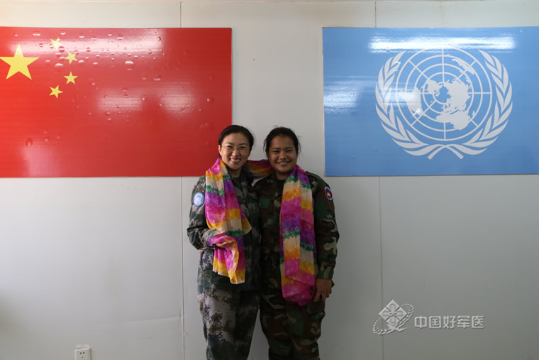 李娜(左)与柬埔寨女护士合影。