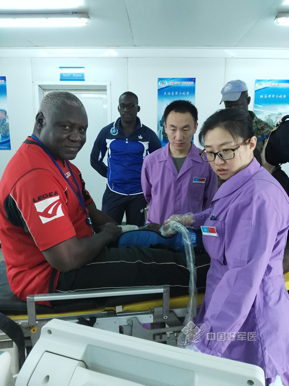 李娜在为外军官兵检查。