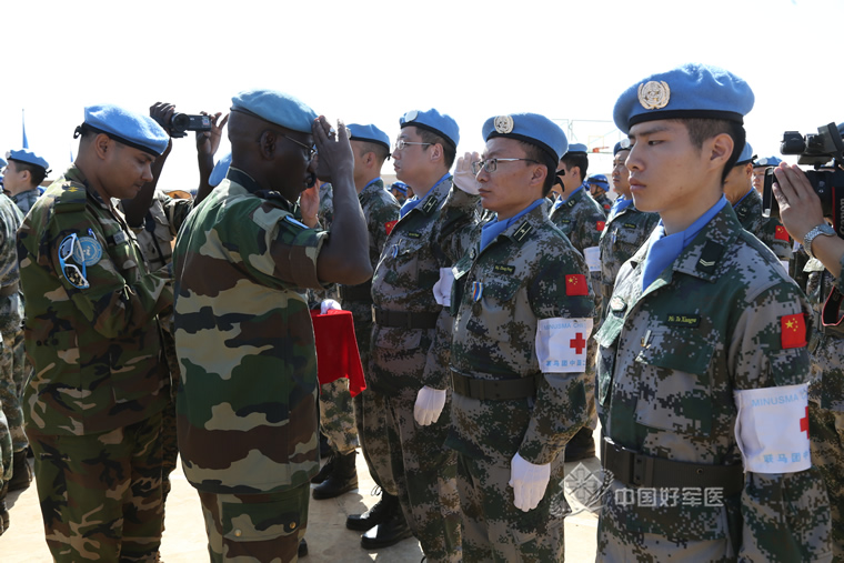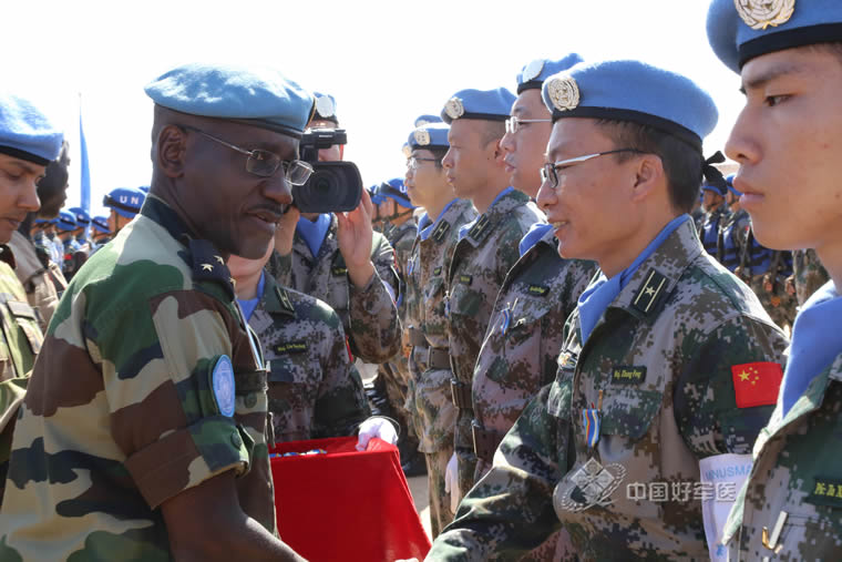 张鹏接受联马团东战区司令代表颁发和平勋章。