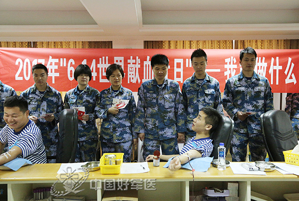 官兵来了、医护人员来了、聘用人员来了……采血室里,献血的人员一波接一波,血袋里的新鲜血液越来越多。皮肤科主任朱卫星告诉笔者,他在献血的同时,还向战友、同事宣讲献血的必要性,用行动影响和带动别人,让大家积极踊跃加入献血大家庭中,帮助别人的同时幸福自己。
