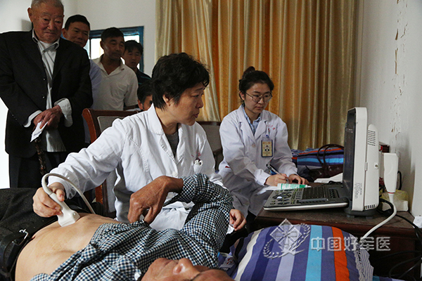 行动不便的老人蹒跚着来了,地里干活的扛着工具来了……眨眼的功夫,专家们面前排起了“长龙”,B超检查更是排到了门外。